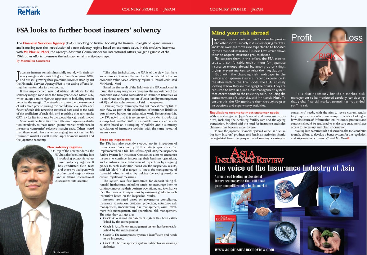 In 2013, we covered how the FSA was working to boost the financial strength of Japan’s insurers and considering the introduction of a new economic value-based solvency regime, with Assistant Commissioner for International Affairs Naruki Mori offering insights into the agency’s broader efforts to keep the industry in top shape.
