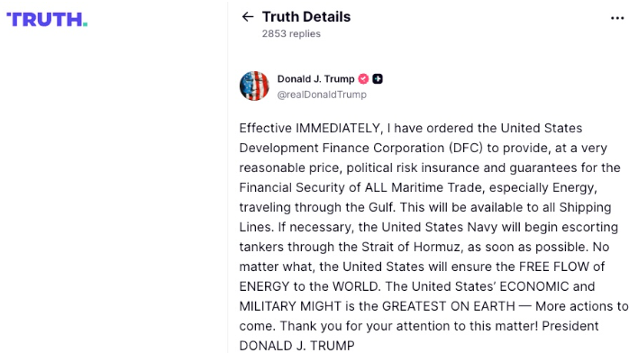 As the war in the Middle East escalates, US President Donald Trump has ordered the US International Development Finance Corporation (DFC) to provide sweeping political risk insurance and unspecified guarantees for maritime trade.