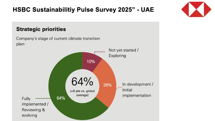 Almost all (94%) of UAE businesses believe the climate transition offers a commercial opportunity for their company, saying it's a growing focus (58%) or a key strategic area (36%), according to the report, "HSBC Sustainability Pulse Survey 2025", released by the global financial services group.